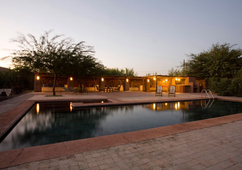 El objetivo fue desarrollar un espacio privado, contenido, que permite sentirse cobijado de la fuerza del desierto. El hotel cuenta con 29 habitaciones dispuestas en tres semicírculos, con campos de cultivo entre medio. Tiene habitaciones singles, dobles superior y estandar, triples y familiares, estructuradas en base a casas separadas unas de otras, con terrazas individuales, baño privado, entradas independientes, tanto a los estacionamientos como al jardín central, piscina, cafetería y recepción Algunas habitaciones cuentan con ducha adicional al aire libre para poder gozar del cielo estrellado.