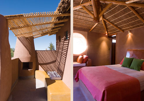 Están decoradas con gran simpleza, usando diferentes recursos de color y forma. Adentro el ambiente es fresco y acogedor, afuera cada pieza tiene una terraza para sentarse a gozar de la vista. Cada habitación es única, tiene distinta distribución y decoración. Se usó el concepto antiguo del uso de las habitaciones como refugio para el intenso sol del día y el frío de la noche. Por esta razón las ventanas son pequeñas y las paredes gruesas; para vivir el desierto hay que salir al exterior.